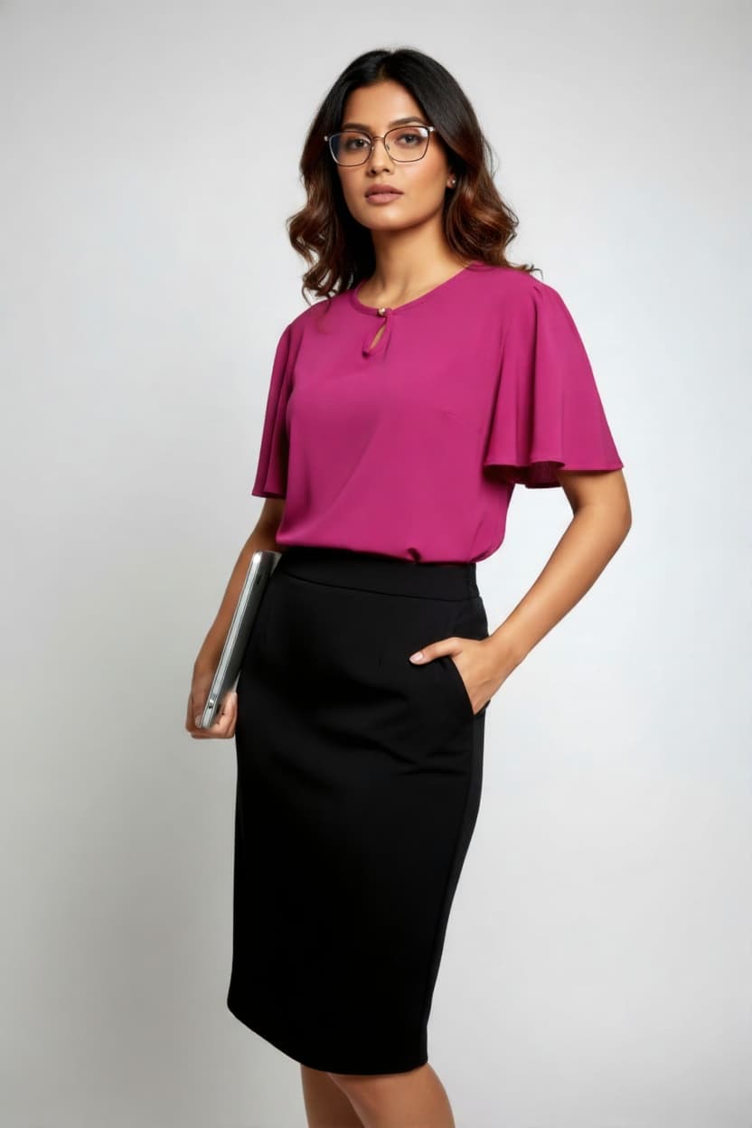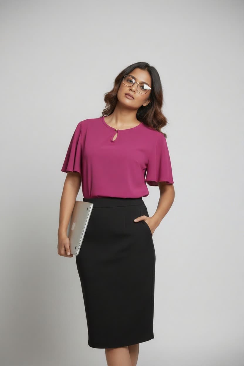 The Fuchsia Elegance Keyhole Blouse is a must-have for anyone looking to infuse their wardrobe with sophistication and vibrant style.