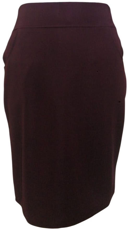 The Ruby Luxe Midi Skirt offers a sleek, figure-flattering silhouette in a rich maroon hue, perfect for both professional and evening wear.